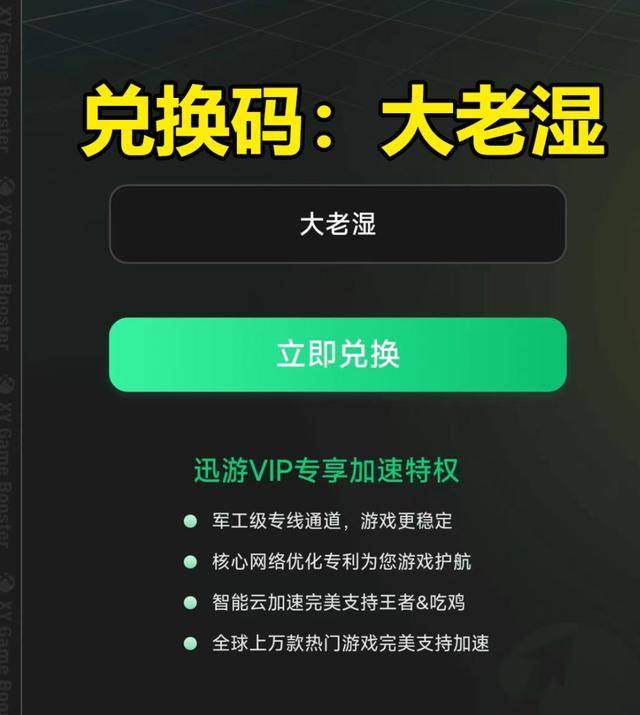 游戏安装完成后,返回迅游加速器,开启一键加速,启动游戏即可流畅游玩,能够解决游戏过程中遇到的延迟卡顿、掉线黑屏等情况。另外,在迅游手游加速器的“个人中心”输入兑换码“大老湿”,免费领取3天VIP会员,解锁专属加速通道。