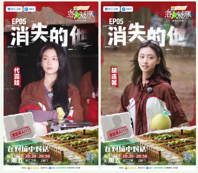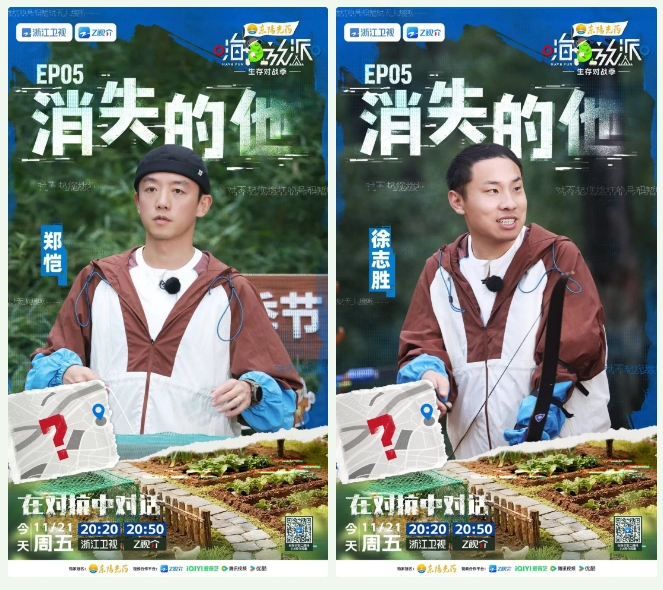 今天(11月21日)20:20,在浙江卫视20:50,在Z视介客户端,由东阳光药独家冠名播出的《嗨放派·生存对战季》第五期。