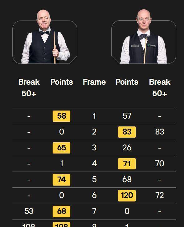 另一场“马克德比”同样看点十足。 马克·艾伦与马克·塞尔比历史交手28次,艾伦以15胜13负稍占上风。 两人都是“后”球员中的佼佼者,球风迥异。 艾伦进攻火力凶猛,塞尔比则以坚韧的防守和战术著称。 他们的对决往往是攻防体系的经典较量。