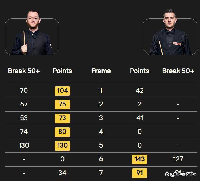 首局比赛,艾伦精准地抓住了塞尔比开局阶段出现的一些小失误,一杆70分的长台进攻直接将比分锁定在104比42,为自己先拔头筹。第二局,塞尔比的状态依旧未能得到有效的提升,整个局中仅获得可怜的2分,而艾伦则再次打出单杆67分的精彩表现,以摧枯拉朽之势再下一城,将比分扩大到2比0的领先优势。