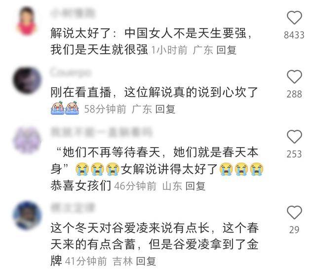 “这个冬天对谷爱凌来说有点长,这个春天来的有点含蓄,但是谷爱凌最终还是拿到了金牌。”