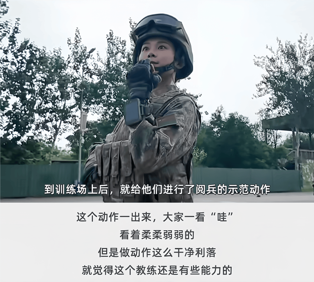 在给男兵们示范阅兵动作时,看似柔柔弱弱的王爽,以比肩电视画面的干净利落的标准动作,打破偏见,也瞬间征服了在场的男兵们。▼