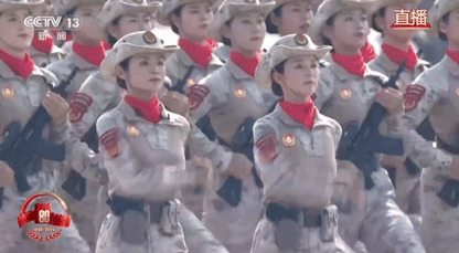 首次亮相的全女民兵方队,是阅兵仪式中唯一全女性徒步方队。她们从全国 15 个省中抽调而出,覆盖当年全国主要抗日根据地。▼