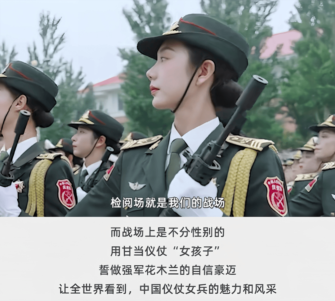 正如仪仗方队女兵徐晨雁所说,检阅场就是我们的战场,而战场上是不分性别的。用甘当仪仗“女孩子”,誓做强军花木兰的自信豪迈,让全世界看到,中国仪仗女兵的魅力和风采。▼